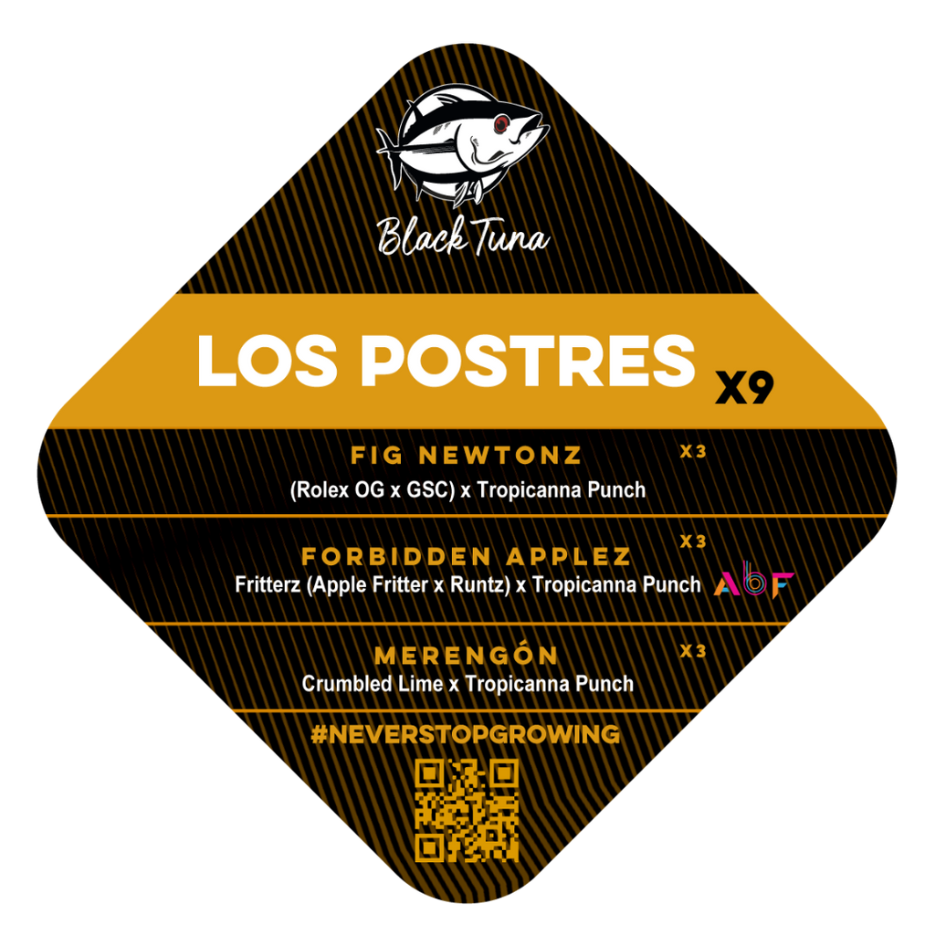 Sumérjase en la frescura y la diversidad genética con el Popurrí Los Postres de Black Tuna, un pack exclusivo diseñado para los coleccionistas más exigentes. Este mix incluye 9 semillas feminizadas distribuidas en tres genéticas únicas: Fig Newtonz, Forbidden Applez y Merengón, cada una con características excepcionales que se destacan por su calidad y su perfil aromático.